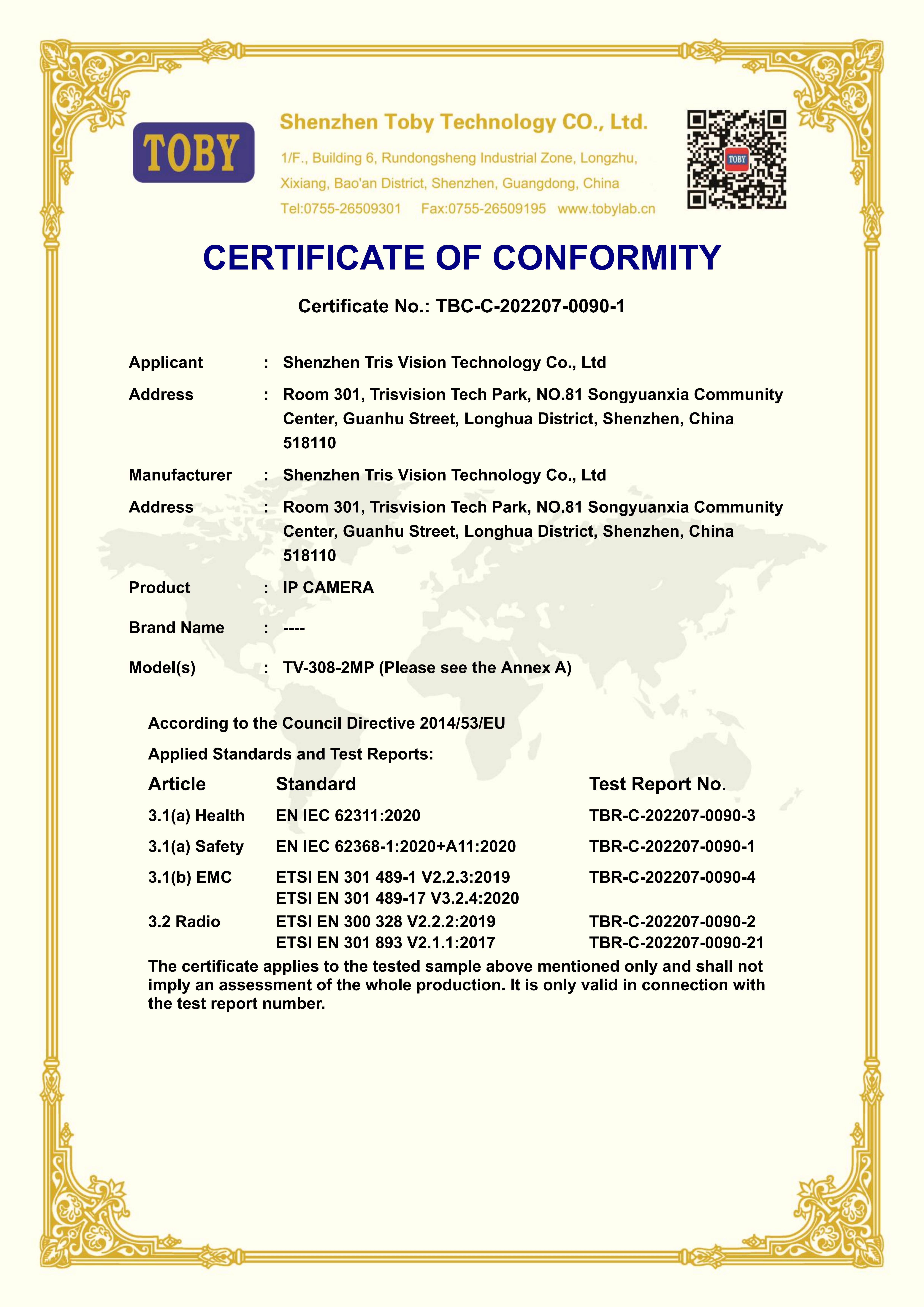 Tris Vision Technology and Tuya Smart have entered into a strategic Crown Membership partnership, with all products certified under CE, FCC, ROHS, TELEC, PSE, and other international standards.